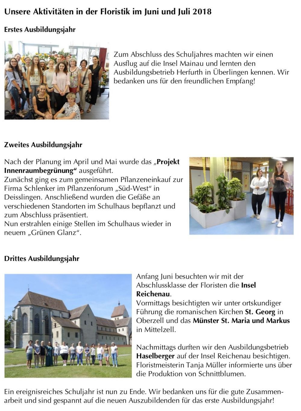 Die Floristik-Abteilung gibt einen Überblick über die Aktivitäten im Juni und Juli